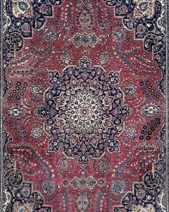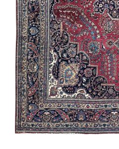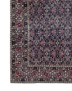 Mostafi Mahal This antique Mostafi Mahal rug features a refined all-over floral design in rich natural dyes of red, blue, and ivory. Handwoven with durable wool, it combines elegance and strength, making it a sophisticated and versatile example of Persian village weaving. Circa late 1800